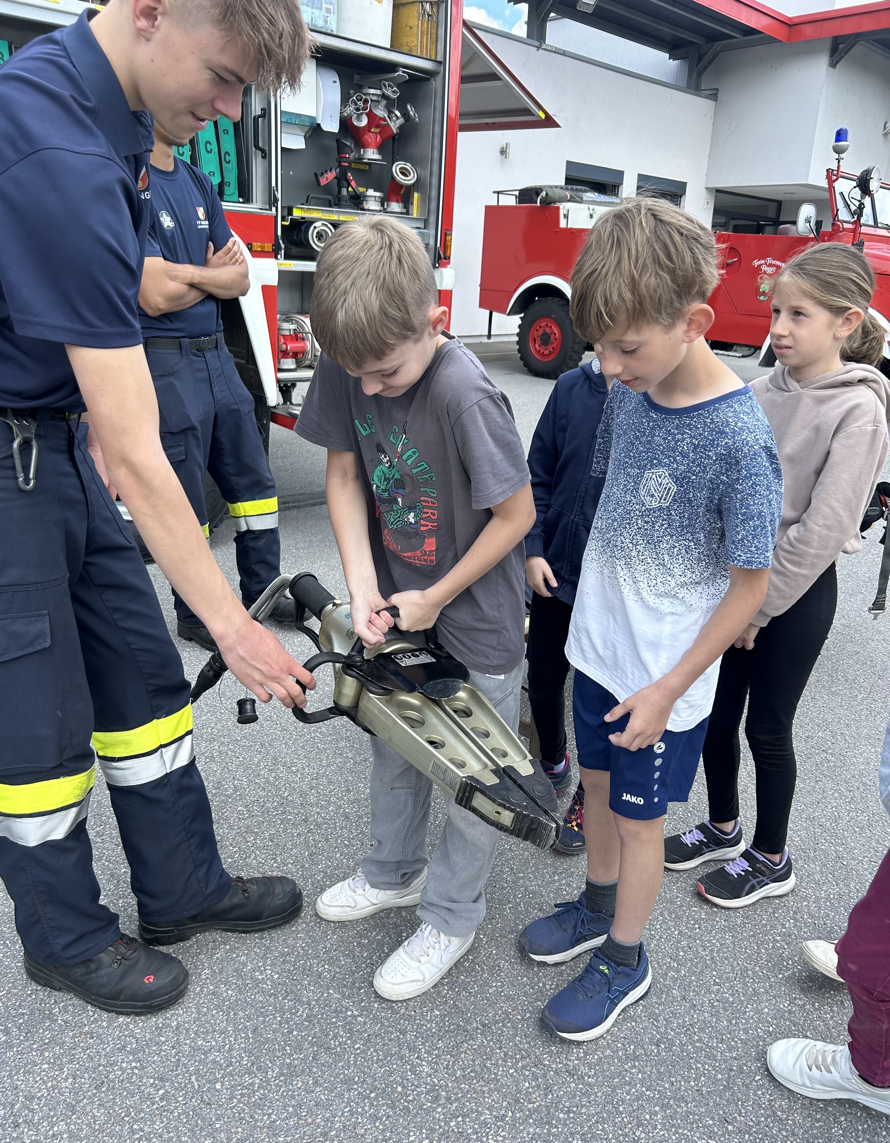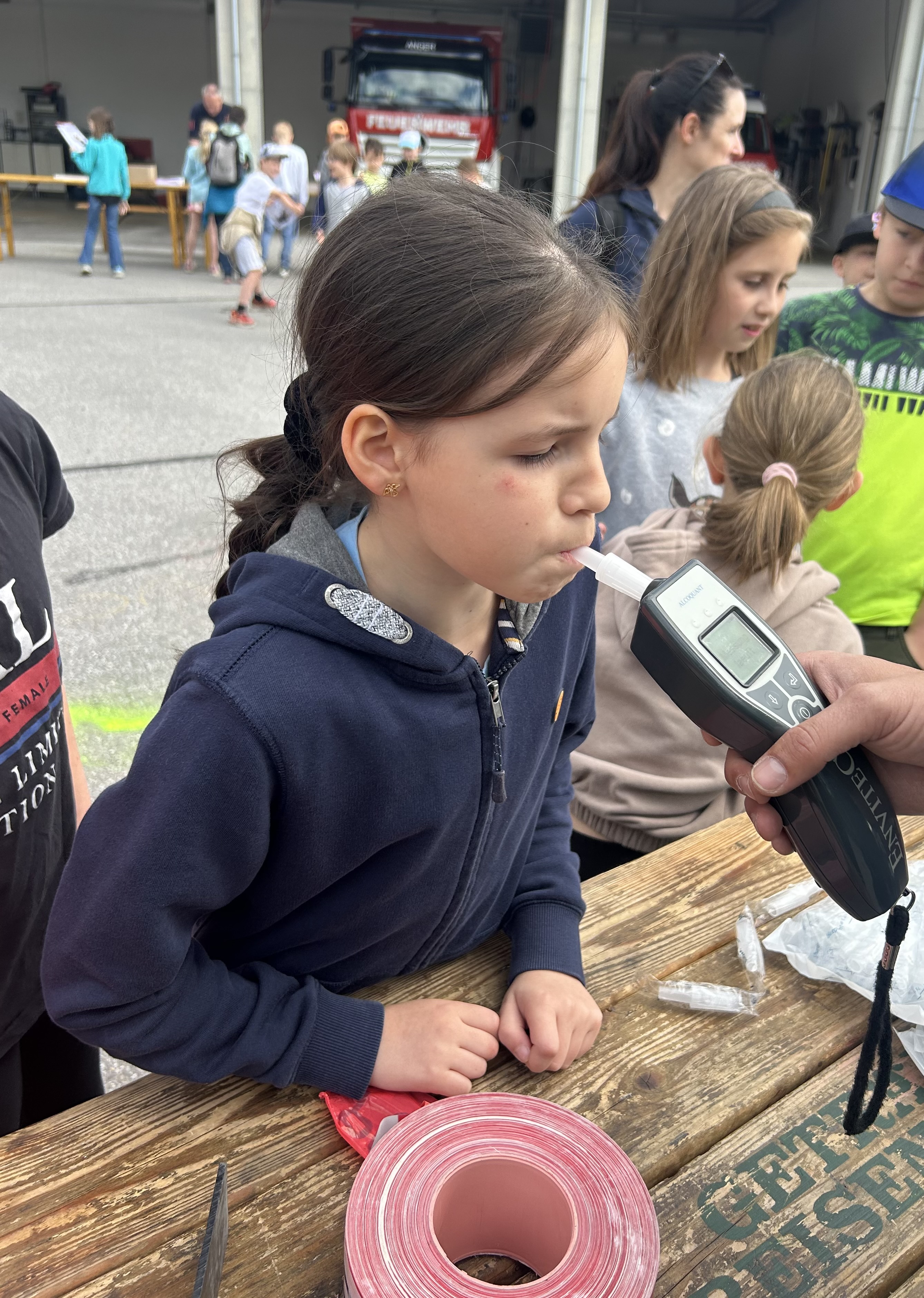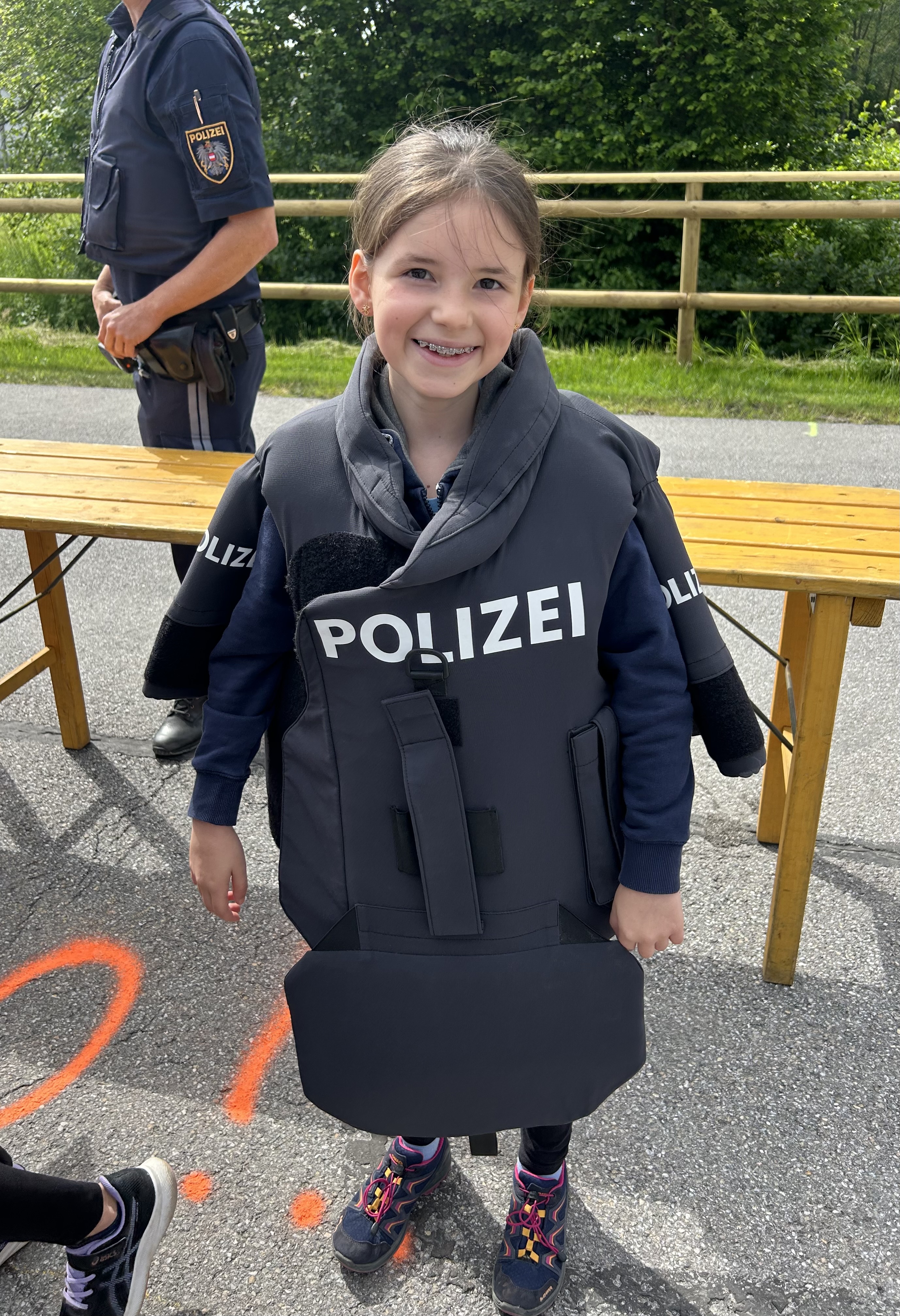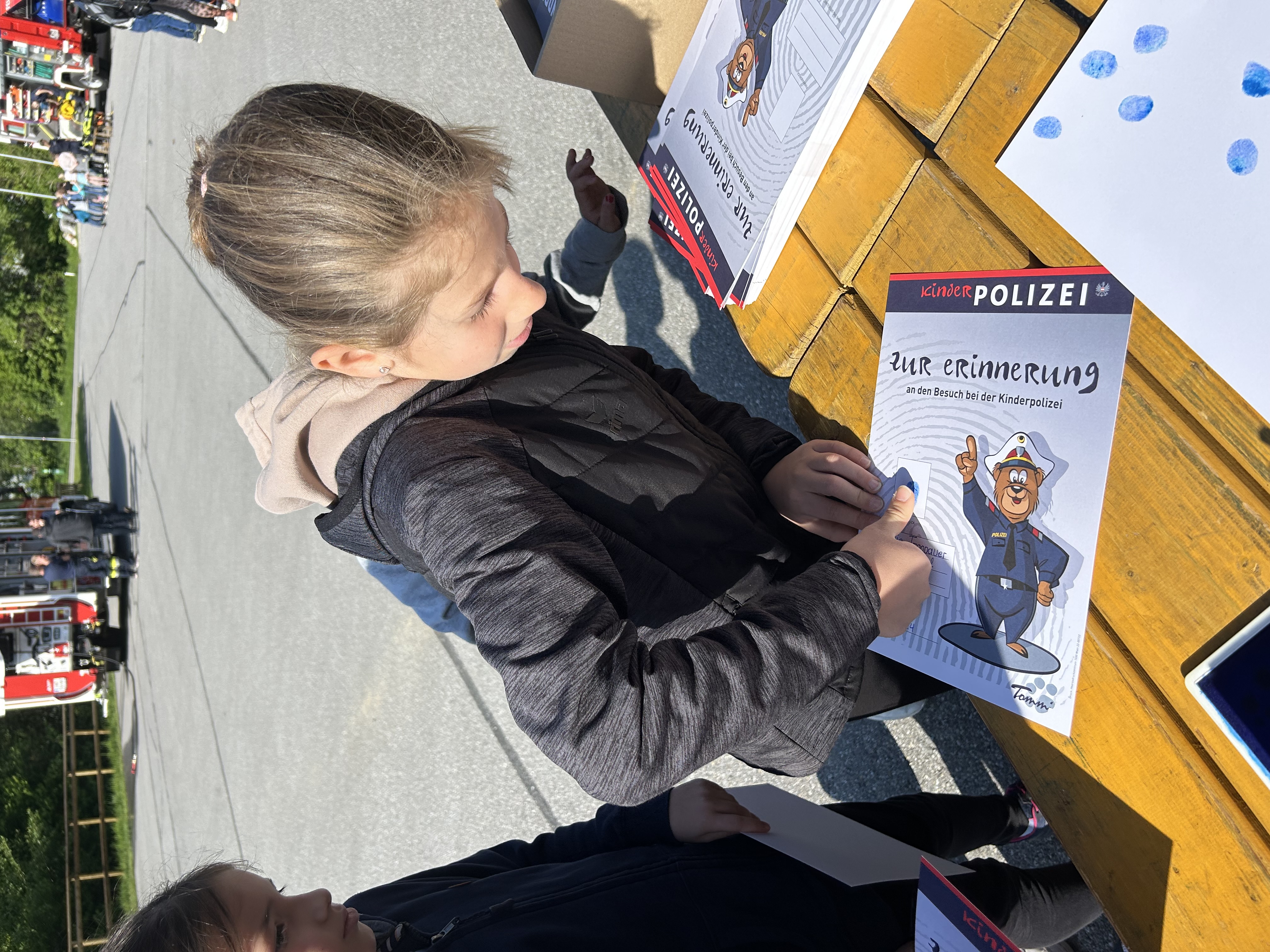 Wie jedes Jahr fand auch heuer wieder die Aktion Kinderpolizei statt. Die Kinder der dritten Schulstufe machten sich daher auf den Weg zur Feuerwehr nach Anger. Dort durften sie vieles über die einzelnen Einsatzkräfte lernen und diverse Stationen der Polizei, Rettung und Feuerwehr Anger ausprobieren. Bei der Rettung beispielsweise wurde der Rettungswagen genauer unter die Lupe genommen und die wichtigsten Aufgaben einer Rettungsperson besprochen. Bei der Feuerwehr wurde das Rüsthaus und die Feuerwehrautos genauer inspiziert, aber auch das Löschen mit einem Feuerwehrschlauch durften die Kinder ausprobieren. Ebenso wurde ein Polizeiauto und -motorrad genauer betrachtet. Viel Freude bereitete es den Kindern, dass sie beim Lasermessen selber darauf achten konnten, wie schnell die Autofahrer auf der Bundesstraße unterwegs waren. Abschließend gab es dann mit dem eigenen Fingerabdruck eine Urkunde und die Schüler:innen waren offziell Kinderpolizisten.