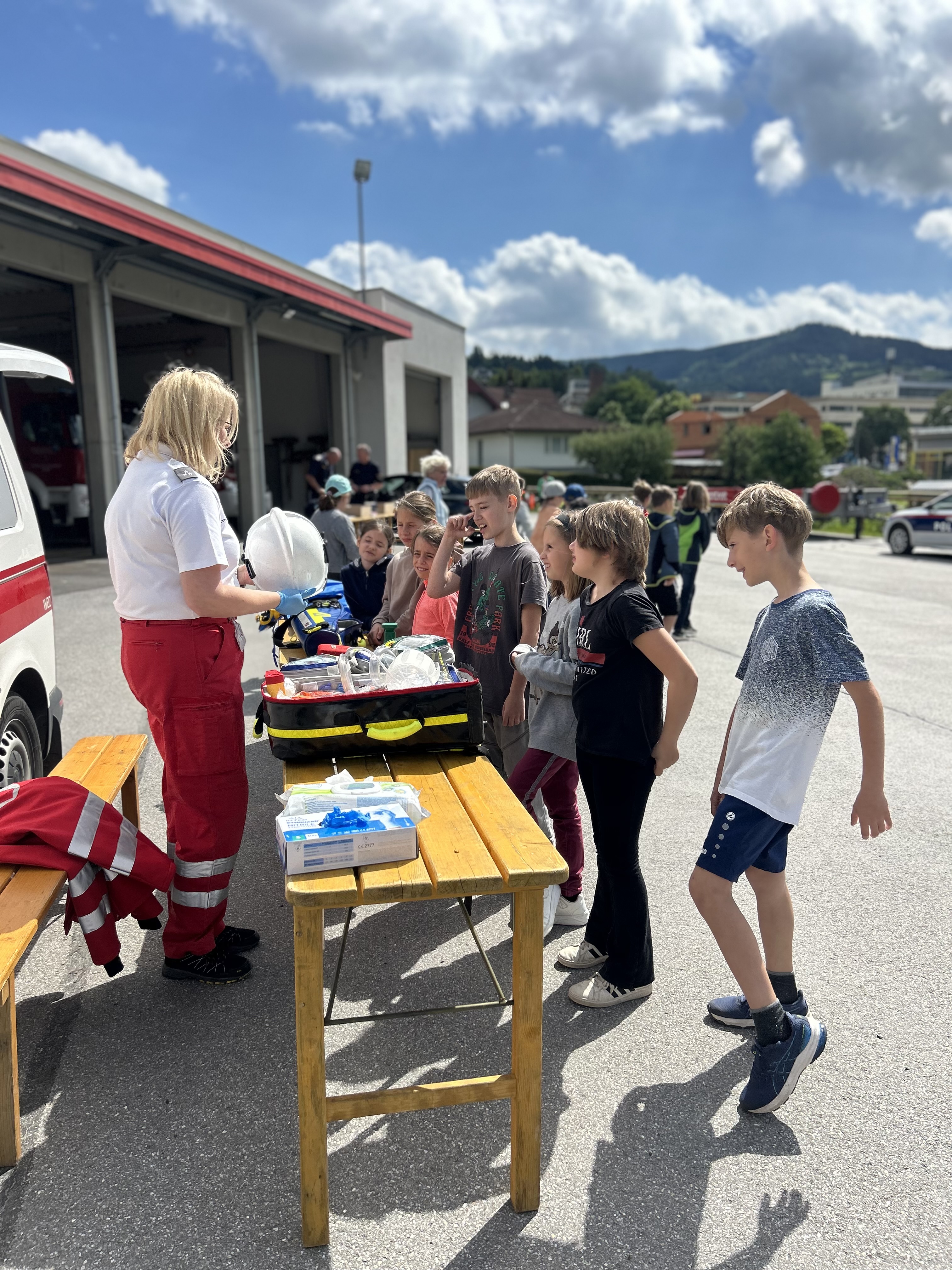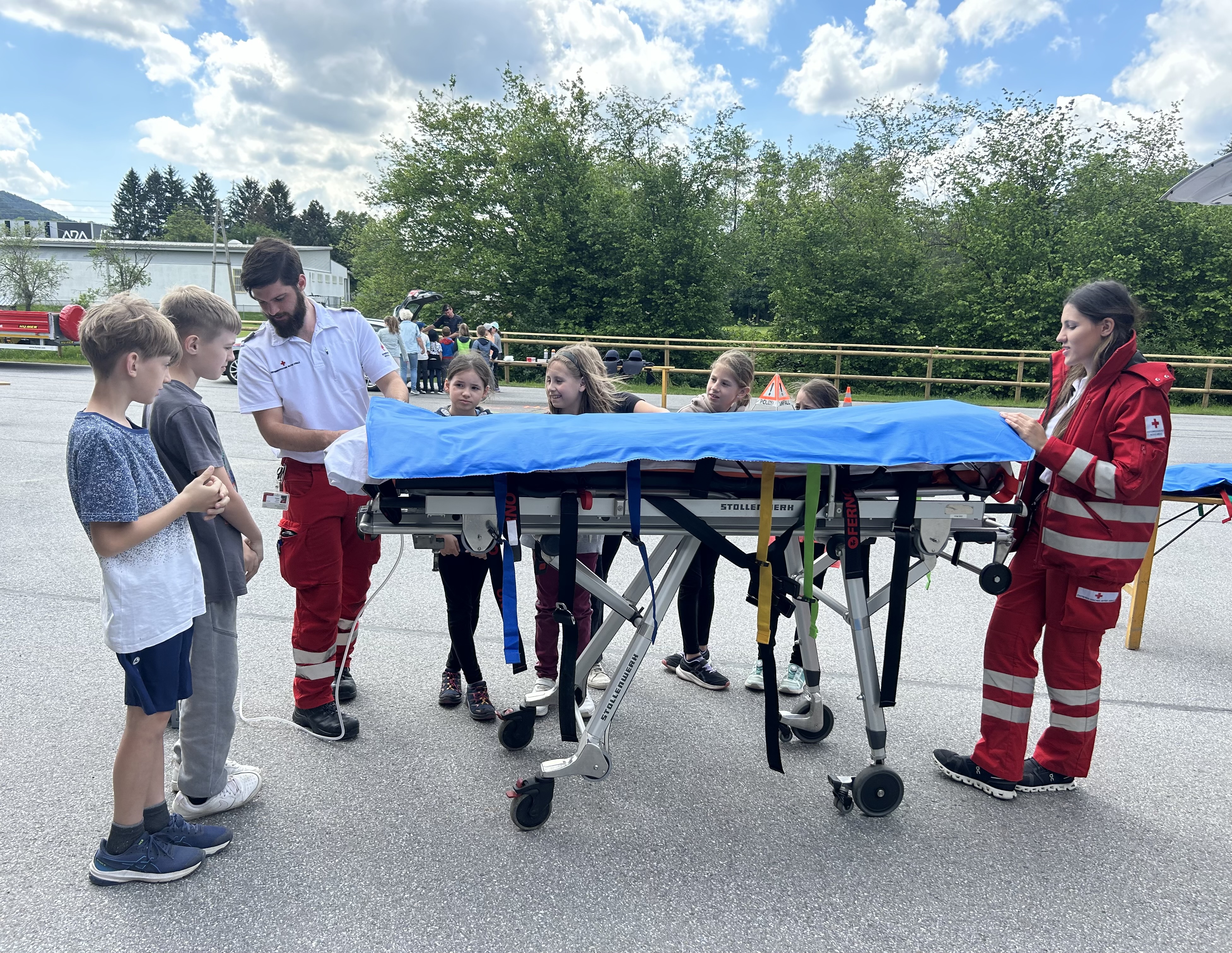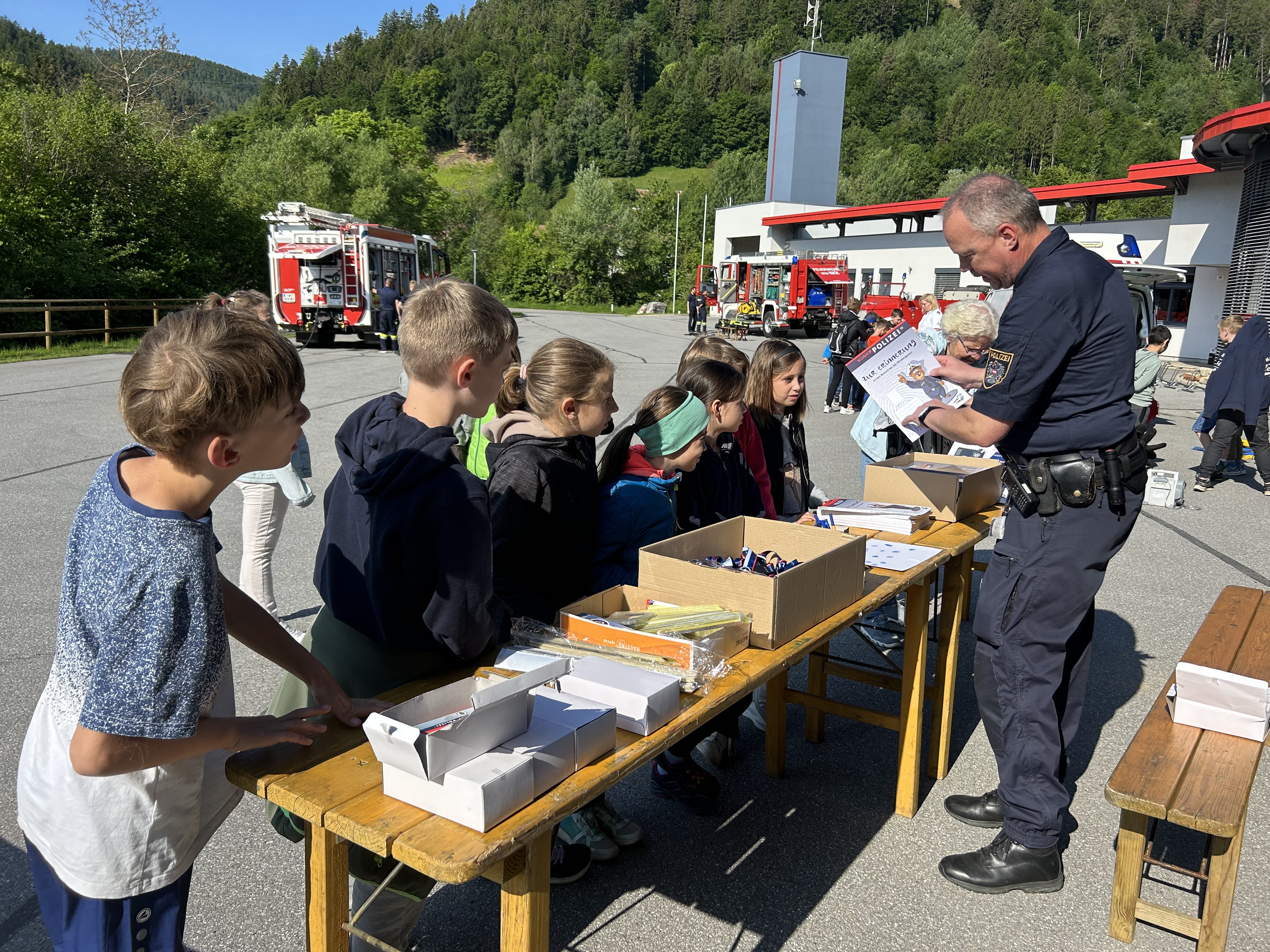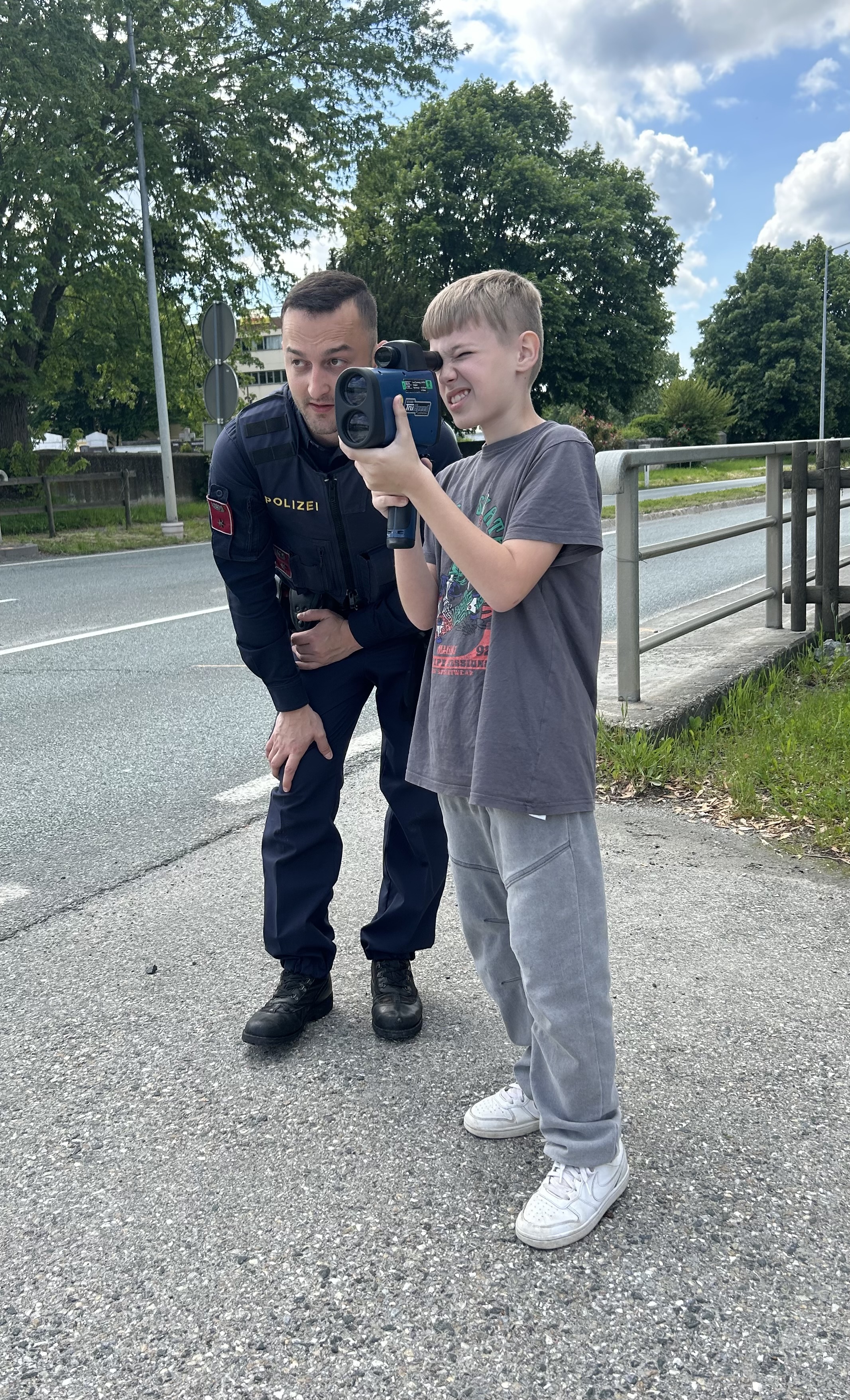 Wie jedes Jahr fand auch heuer wieder die Aktion Kinderpolizei statt. Die Kinder der dritten Schulstufe machten sich daher auf den Weg zur Feuerwehr nach Anger. Dort durften sie vieles über die einzelnen Einsatzkräfte lernen und diverse Stationen der Polizei, Rettung und Feuerwehr Anger ausprobieren. Bei der Rettung beispielsweise wurde der Rettungswagen genauer unter die Lupe genommen und die wichtigsten Aufgaben einer Rettungsperson besprochen. Bei der Feuerwehr wurde das Rüsthaus und die Feuerwehrautos genauer inspiziert, aber auch das Löschen mit einem Feuerwehrschlauch durften die Kinder ausprobieren. Ebenso wurde ein Polizeiauto und -motorrad genauer betrachtet. Viel Freude bereitete es den Kindern, dass sie beim Lasermessen selber darauf achten konnten, wie schnell die Autofahrer auf der Bundesstraße unterwegs waren. Abschließend gab es dann mit dem eigenen Fingerabdruck eine Urkunde und die Schüler:innen waren offziell Kinderpolizisten.