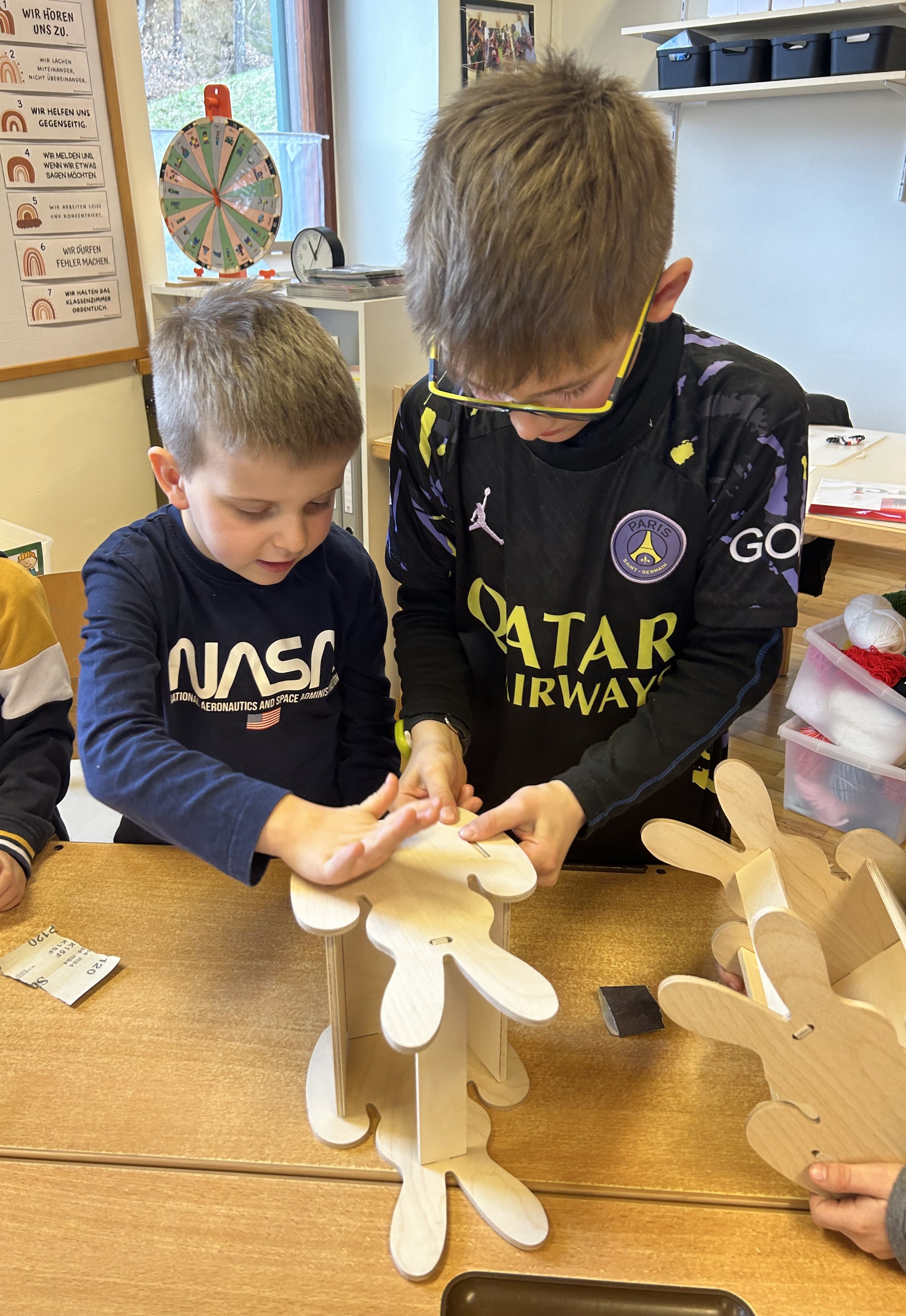 Im Zuge des Klimaschutzprojektes bekamen die Kinder wieder Besuch. Dieses Mal von Adi Dengg, der den Beruf des Tischlers vorstellte und diesen den Schüler*innen näherbrachte. Dabei wurde der Weg vom Baum bis zu den fertigen Möbelstücken besprochen und auch Einblicke in den Alltag der Arbeit eines Tischlers wurde genauer unter die Lupe genommen. Das Highlight des Tages war, dass die Kinder selbstständig Werkstücke aus Holz herstellen durften. Das Thema Holz wurde an diesem Tag noch weitergespannt. Die Kinder machten sich dazu auf den Weg, mussten jedoch nur 200m gehen, ehe sie beim Mikro Heizwerk von Johannes Glößl ankamen. Dieser erklärte den Kindern, wie das Holz zum Heizen verwendet wird. Besonders erfreut hat die Kinder, dass dieses Heizwerk dafür sorgt, dass es auch bei uns in der Schule warm ist. So war die Thematik für die Schüler*innen noch greifbarer. Vielen Dank an die beiden Herren für die Zeit und die tolle Umsetzung!