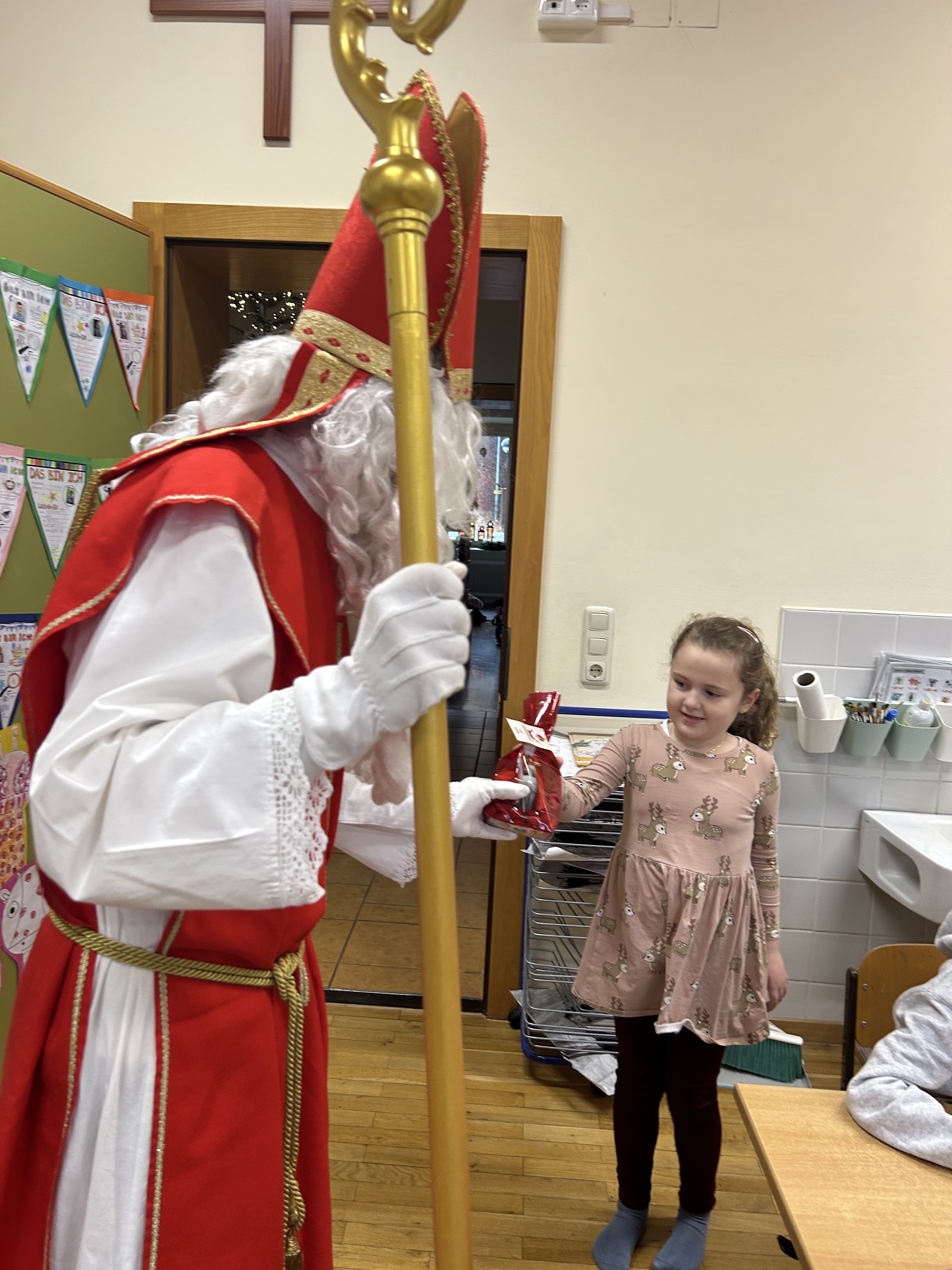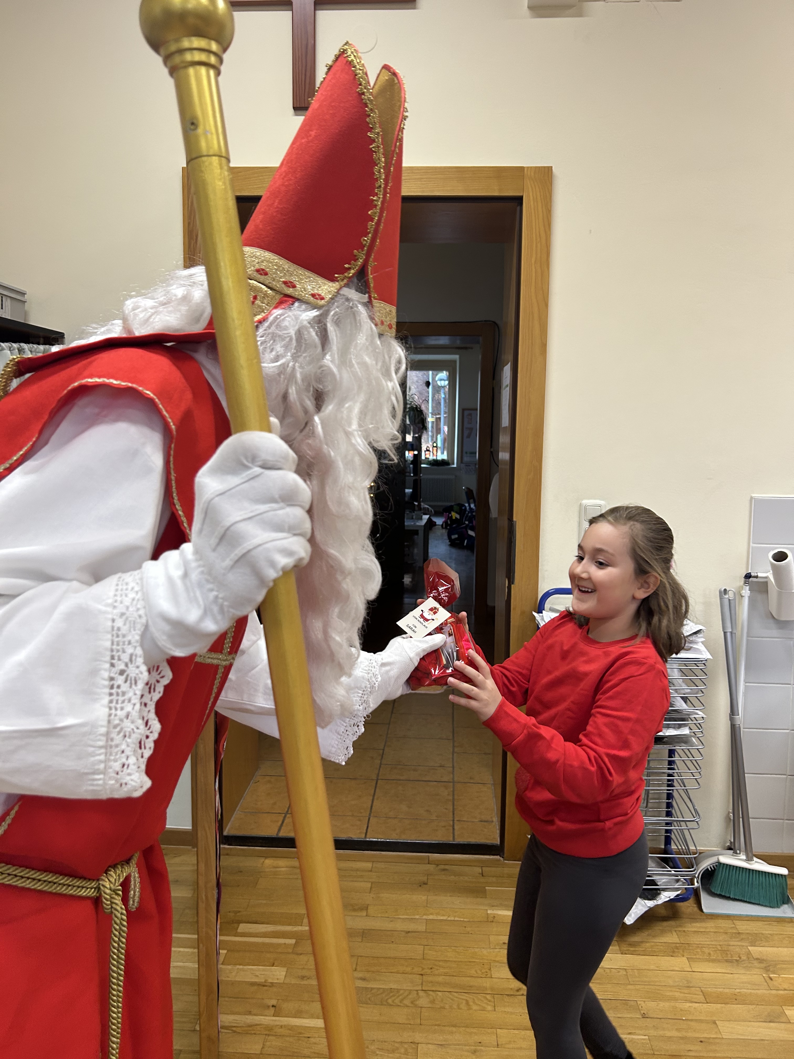 Am Freitag dem 5. Dezember war ein ganz besonderer Tag für unsere Schülerinnen und Schüler: Der Nikolaus hat uns besucht! Mit seinem großen Buch, seinem warmen Lächeln und einem Sack voller kleiner Überraschungen kam er zu uns und brachte Kinderaugen zum Strahlen.