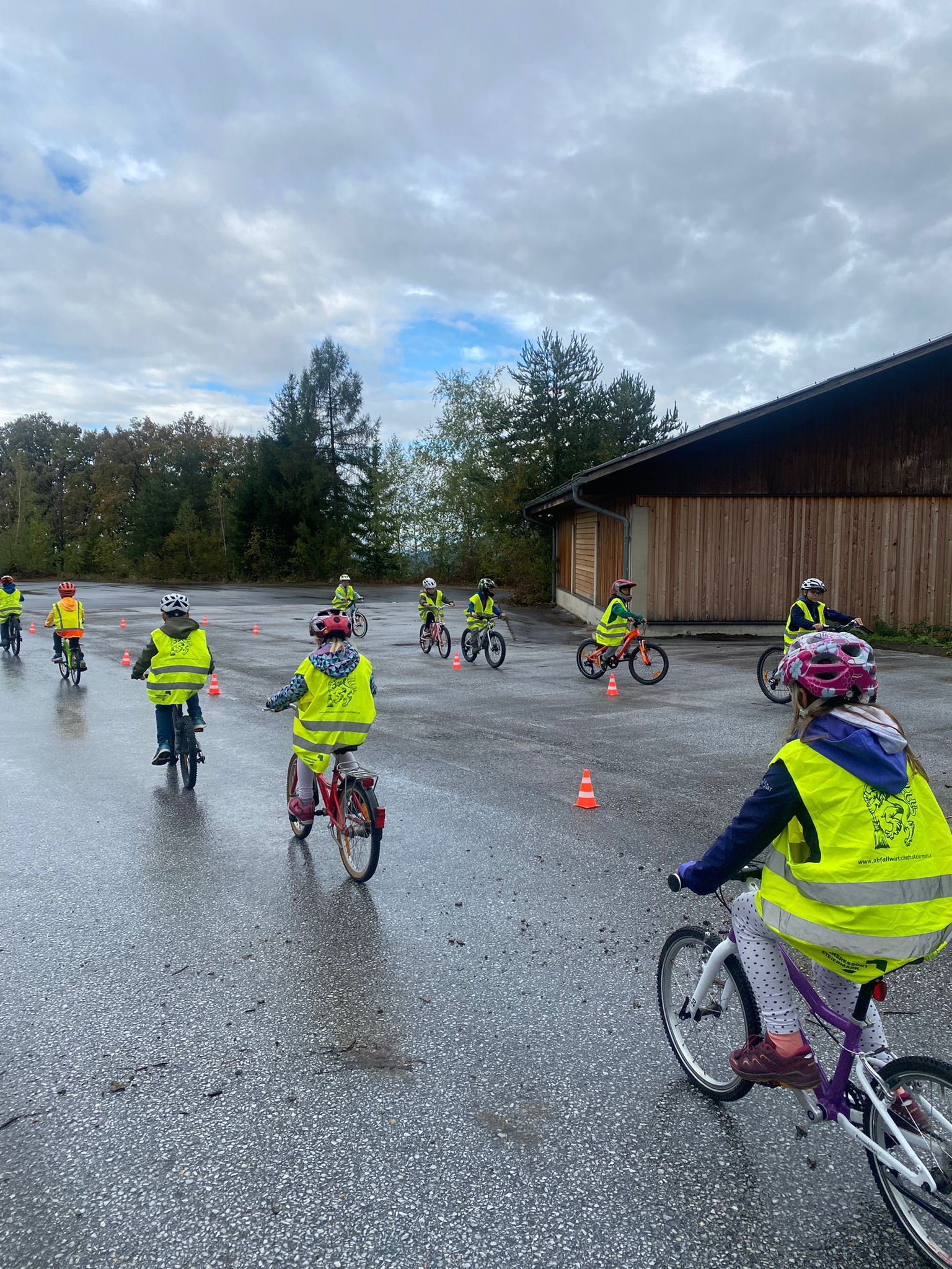 Den Höhepunkt bildete der abschließende Rundkurs, den die beiden Trainerinnen auf dem nahegelegenen Parkplatz aufgebaut hatten. Hier konnten die Kinder ihre neu erworbenen Fähigkeiten unter Beweis stellen. Im Fokus standen Übungen wie das Zielbremsen, der Raketenstart – ein schneller und kontrollierter Start– sowie das gerade Fahren auf schmalen Fahrbahnen. Mit viel Begeisterung und Konzentration absolvierten die Kinder den Parkour und zeigten, wie sicher sie sich schon auf zwei Rädern bewegen können.
