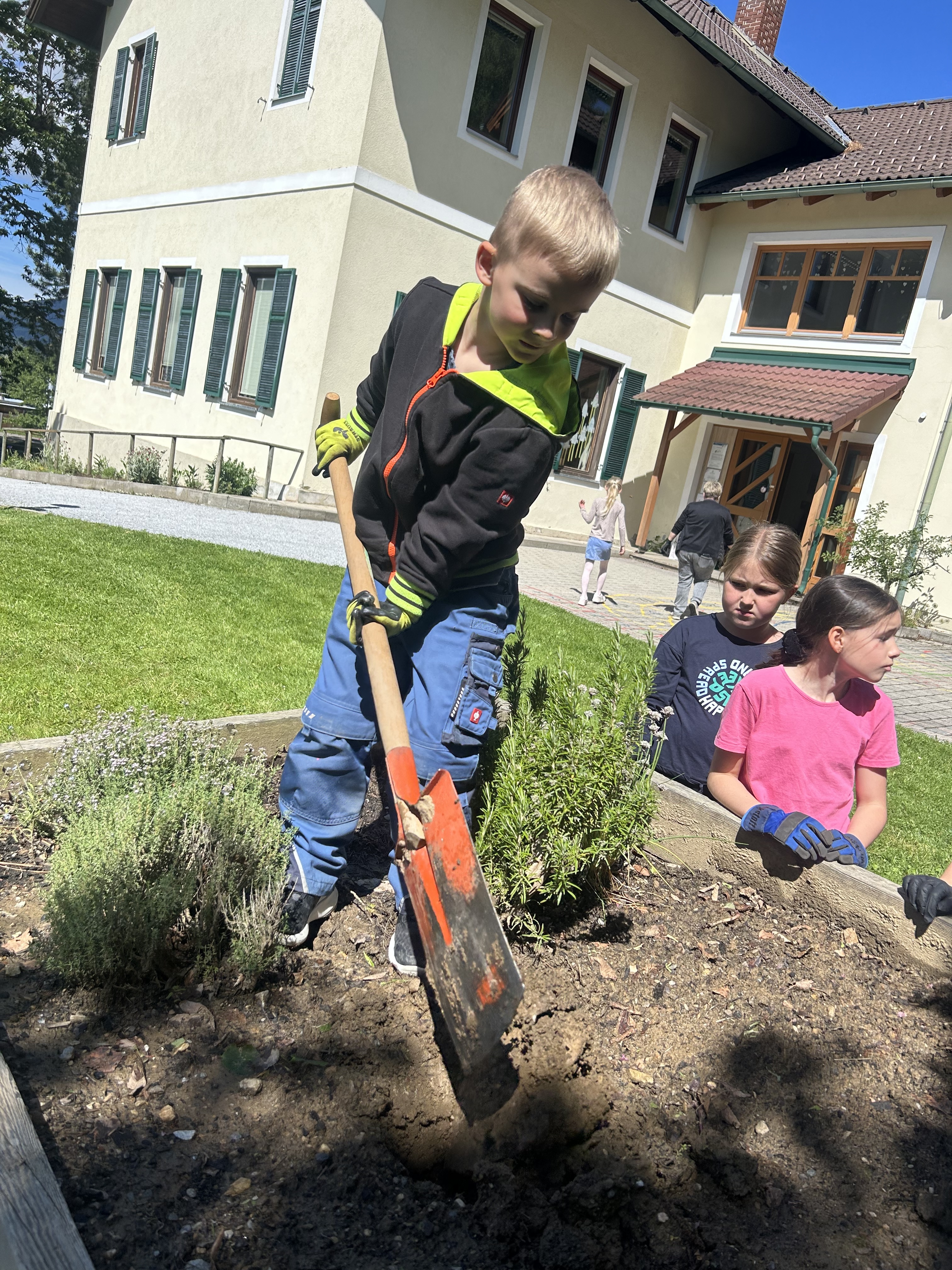In der Pause wurde dann auch fleißig im Schulgarten gearbeitet und Karotten, Salat, Tomaten und vieles mehr gesetzt. Die Kinder haben immer eine große Freude dabei, selbst Gemüse und Kräuter anzusetzen und den Prozess zu beobachten sowie zu begleiten.