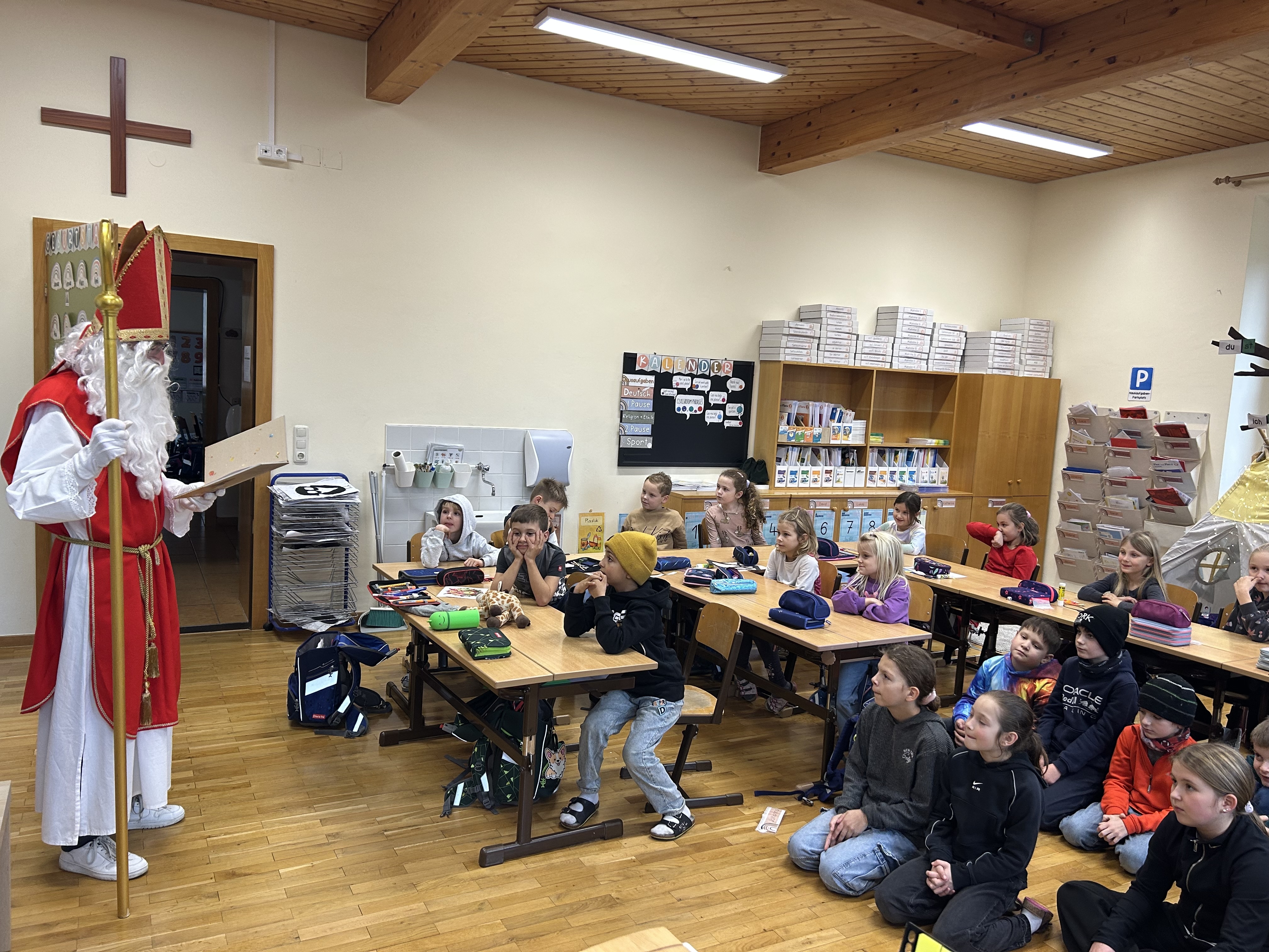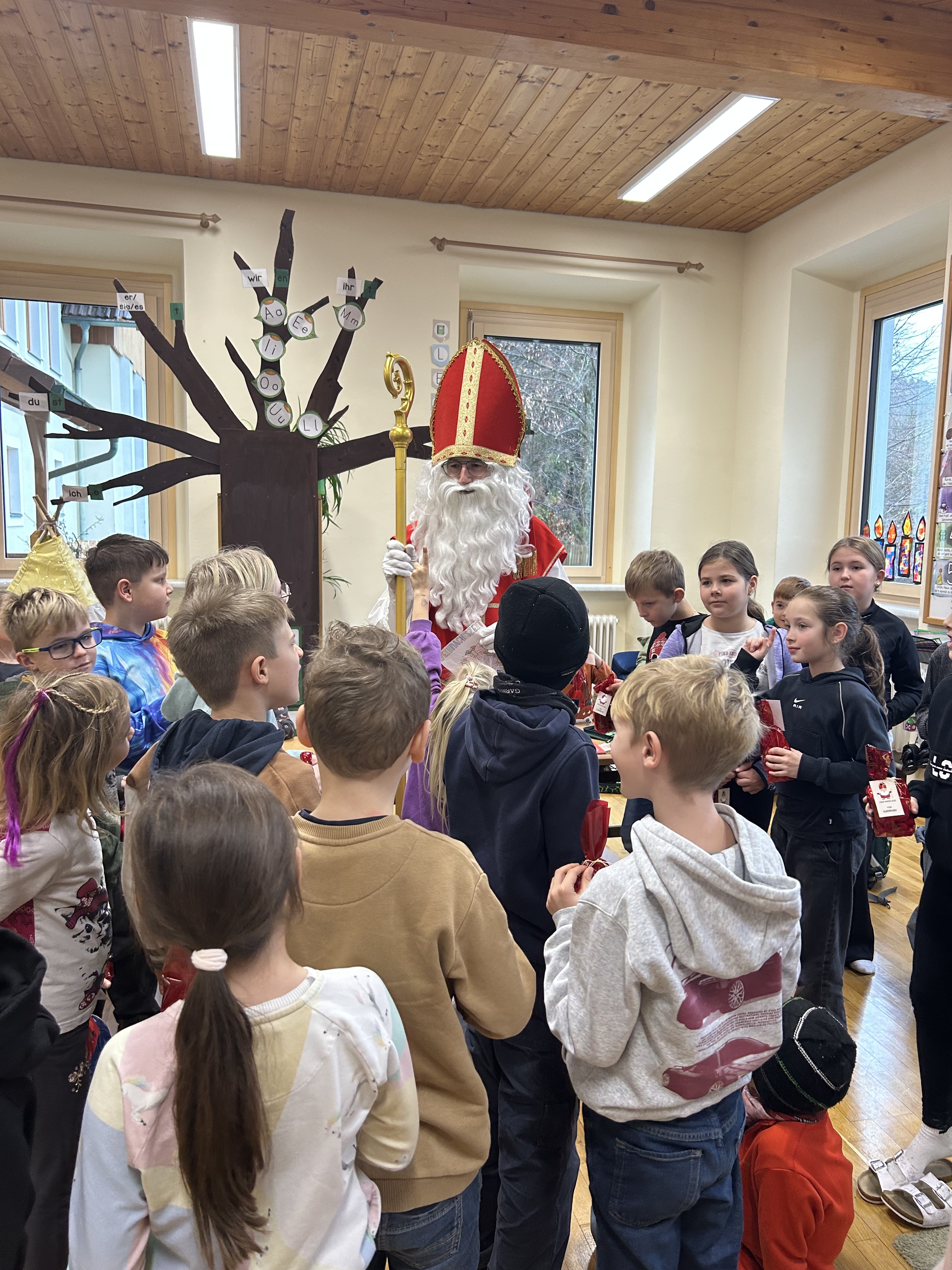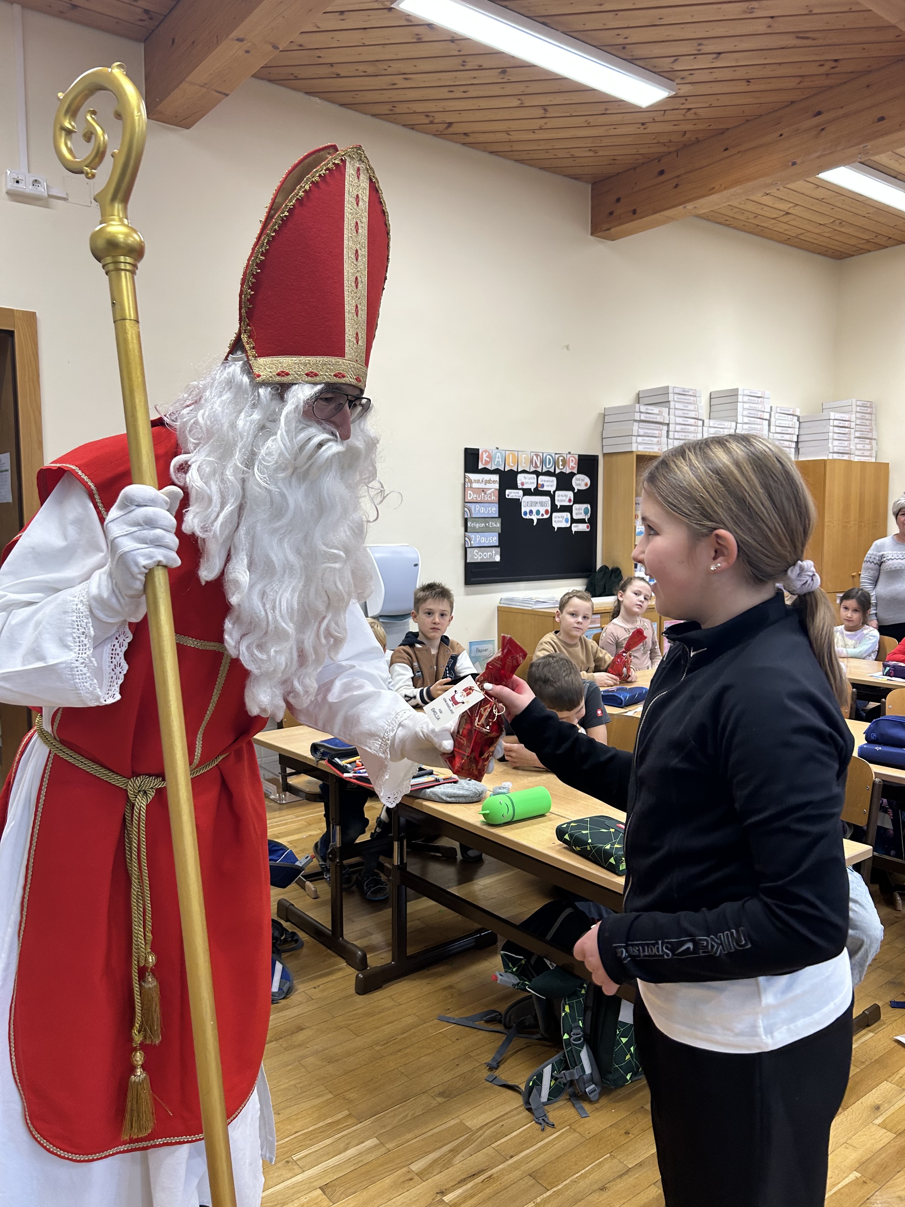 Am Freitag dem 5. Dezember war ein ganz besonderer Tag für unsere Schülerinnen und Schüler: Der Nikolaus hat uns besucht! Mit seinem großen Buch, seinem warmen Lächeln und einem Sack voller kleiner Überraschungen kam er zu uns und brachte Kinderaugen zum Strahlen.