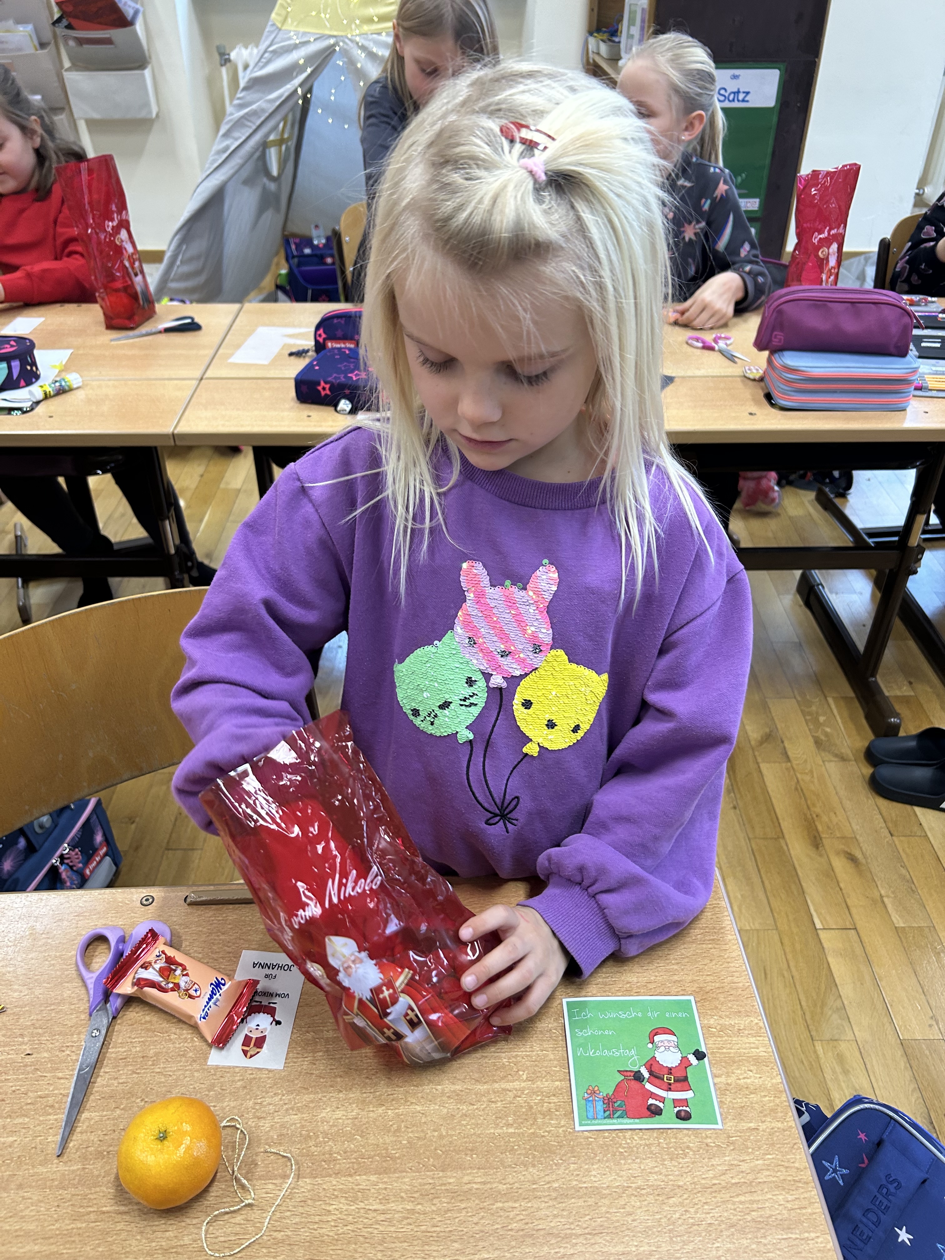 Zum Abschluss gab es für alle eine kleine Nikolausgabe, über die sich die Kinder sehr freuten. Wir bedanken uns herzlich beim Nikolaus für seinen Besuch und die festliche Stimmung, die er in unsere Schule gebracht hat.